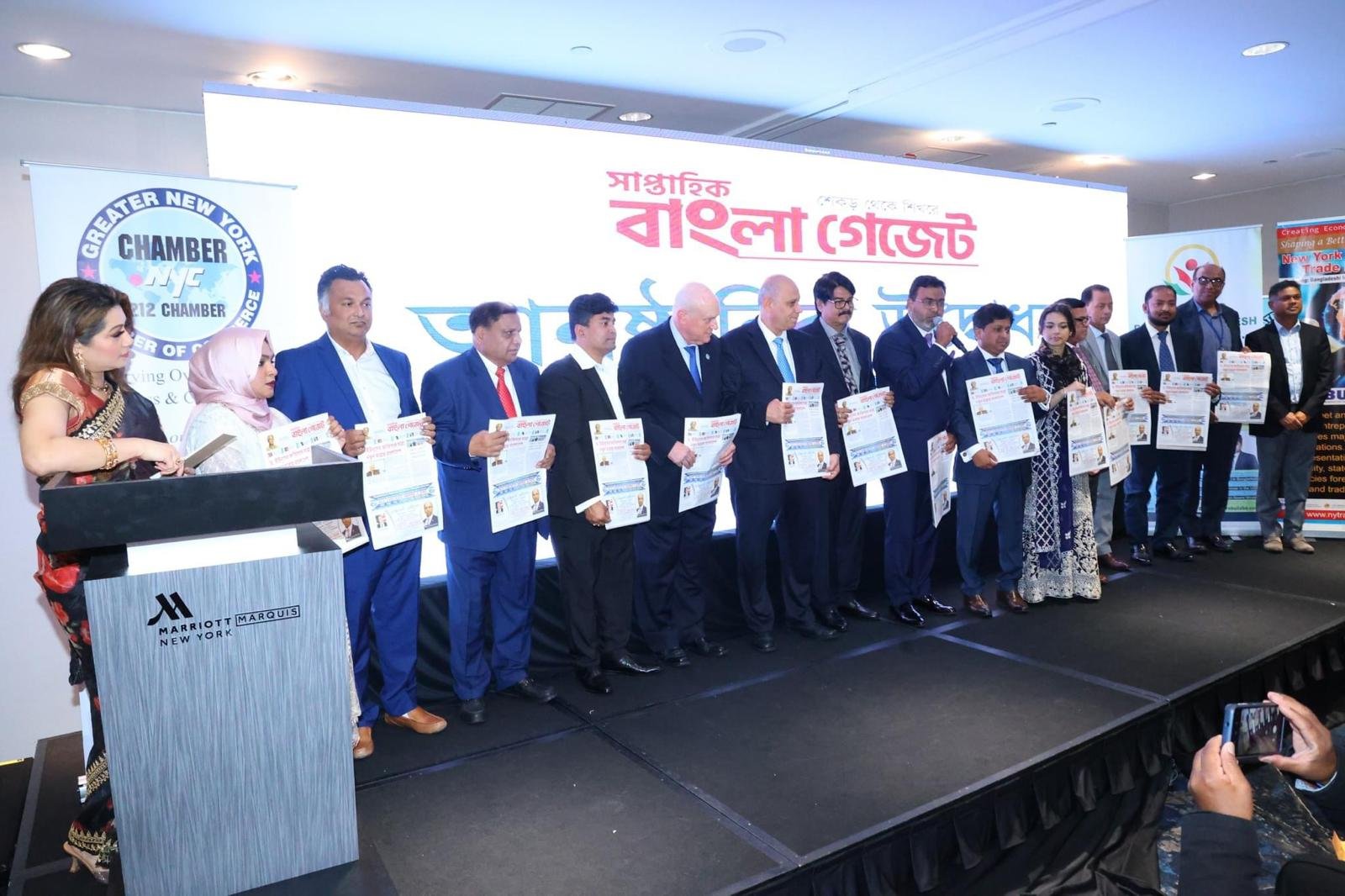 আত্মপ্রকাশ করলো নিউ ইয়র্কভিত্তিক নতুন সাপ্তাহিক পত্রিকা ‘বাংলা গেজেট’। ২৪ সেপ্টেম্বর নিউ ইয়র্কের ম্যারিয়ট মারকুইস হোটেলে এক আড়ম্বরপূর্ণ আয়োজনে পত্রিকার উদ্বোধন করা হয়। পত্রিকার প্রথম সংখ্যা উদ্বোধন করেন বিশিষ্ট নজরুল সংগীত শিল্পী সুজিত মোস্তফা। এসময় উপস্থিত ছিলেন আনন্দধারার সম্পাদক জাহাঙ্গীর আলম জয়, কোরিয়ান-আমেরিকান চেম্বার অব কর্মাসের প্রেসিডেন্ট মি. কিম, অর্থডক্স জিউস চেম্বার অব কমার্সের প্রেসিডেন্ট মি. ডবি। উদ্বোধনী অনুষ্ঠানে উপস্থিত হয়ে নতুন পত্রিকার জন্য শুভ কামনা জানান বাংলাদেশের কমিউনিটি নেতারা।