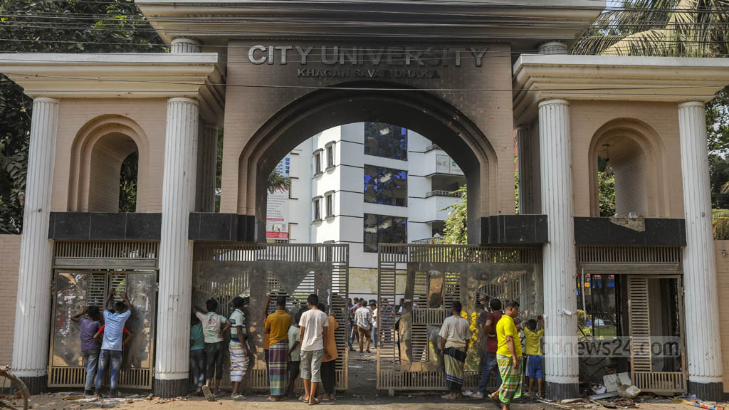 পুলিশ ও প্রত্যক্ষদর্শীরা জানান, মধ্যরাতে ড্যাফোডিলের শিক্ষার্থীরা সিটি ইউনিভার্সিটির সীমানা প্রাচীর ভেঙে ক্যাম্পাসে ঢুকেন। এ সময় ক্যাম্পাসে দাঁড় করিয়ে রাখা বিশ্ববিদ্যালয়ের গাড়িতে ভাঙচুর ও আগুন দেওয়া হয়।