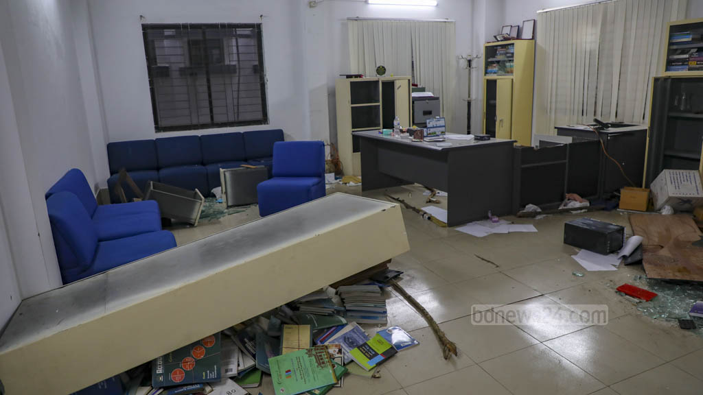 প্রায় প্রতিটি কক্ষের চেয়ার, টেবিল, কম্পিউটার, বাথরুমের কমোড, বেসিন, দরজা, এসি, ফটোকপি মেশিন, প্রিন্টার ভাঙা পড়ে রয়েছে। অফিসকক্ষ, অভ্যর্থনাকক্ষ ও কর্মকর্তাদের ডেস্কগুলো অনেকাংশে ভাঙচুর ও তছনছ করে দেওয়া হয়েছে।
